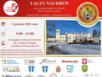 Przed nami kolejna akcja honorowej zbiórki krwi w naszym regionie. 5 grudnia krew będzie można oddać w Sannikach. 5 grudnia krew będzie można oddać w godz. 09:00-13:00 w Europejskim Centrum Artystycznym im. Fryderyka Chopina w Sannikach. Krwiodawcy...
