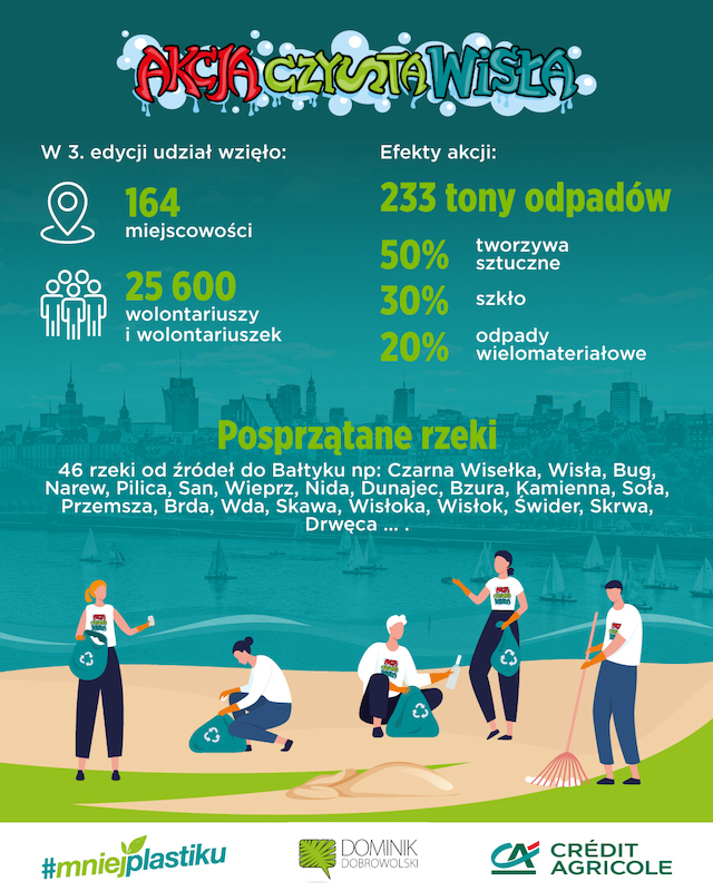 Zakończyła się trzecia edycja Akcji Czysta Wisła, największej ogólnopolskiej inicjatywy ekologicznej, której celem jest walka z plastikowymi odpadami w polskich rzekach. W tym roku padł rekord, w sprzątaniu wzięło udział ponad 25 tysięcy wolontariuszy, którzy zebrali aż 233 tony śmieci.