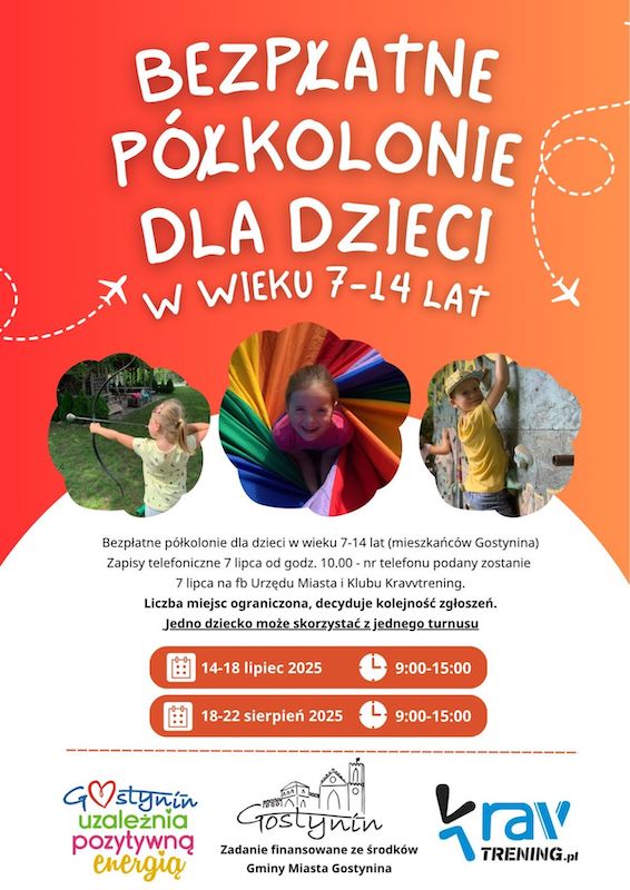 Zapisy na półkolonie rozpoczną się 11 sierpnia 2025 roku o godzinie 17:00 i będą prowadzone telefonicznie. Numer kontaktowy zostanie opublikowany tego samego dnia na oficjalnych profilach Urzędu Miasta Gostynina oraz Klubu kravvtrening.pl na Facebooku. Liczba miejsc jest ograniczona – decyduje kolejność zgłoszeń.