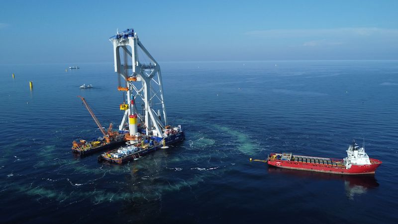 Instalacja monopali wymagała zaangażowania specjalistycznych statków, holowników, jednostek transportujących załogi i monitorujących środowisko. Aby ograniczyć wpływ na faunę morską, obszar prac został otoczony podwójną podwodną kurtyną powietrzną minimalizującą hałas i wibracje.