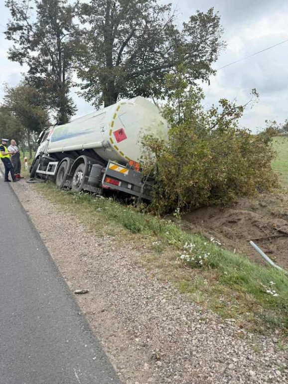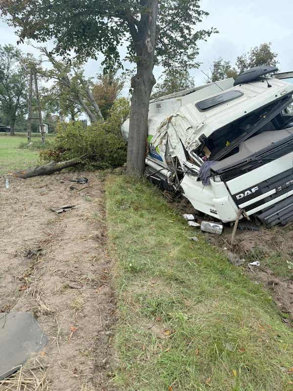 Komenda Miejska Policji w Płocku poinformowała o zdarzeniu drogowym z udziałem pojazdu ciężarowego. Jak wynika ze wstępnych ustaleń policji, w pojeździe najprawdopodobniej doszło do wystrzału opony. W wyniku tego 38-letni kierowca stracił panowanie nad pojazdem, zjechał z drogi, wpadł do rowu, uderzając po drodze w drzewa oraz znaki drogowe.