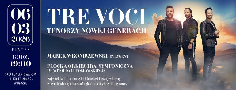 Podczas koncertu zabrzmią największe hity muzyki filmowej i rozrywkowej, a to wszystko w wykonaniu TRE VOCI i Płockiej Orkiestry Symfonicznej pod batutą maestro Marka Wroniszewskiego, Dyrektora Filharmonii Dolnośląskiej w Jeleniej Górze. Wcześniej pełnił funkcję Pierwszego Dyrygenta Gościnnego oraz, w latach 2019 – 2022, Zastępcy Dyrektora Polskiej Orkiestry Sinfonia Iuventus im. Jerzego Semkowa.