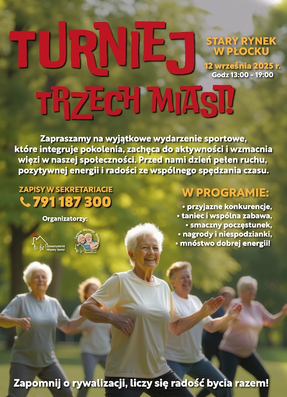 W programie piątkowego Turnieju Trzech Miast znajdą się konkurencje sportowe, wspólny taniec, muzyka na żywo oraz poczęstunek dla uczestników. Stowarzyszenie „Aktywny Senior” zapowiada także liczne nagrody i niespodzianki.