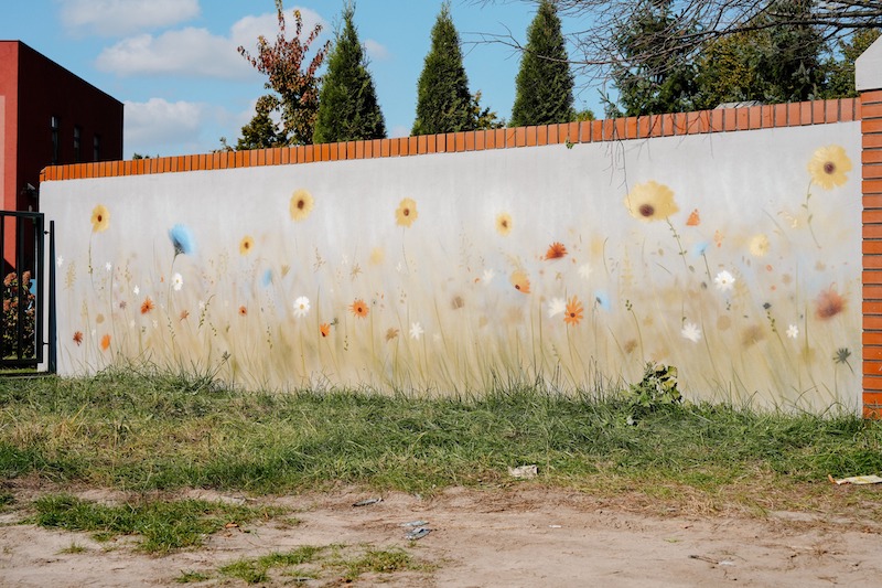 Kolorowa łąka wita już gości wchodzących do skweru. Autorem muralu jest Tomasz Jędrczak – Malowanie Artystyczne, wyłoniony w przetargu na realizację projektu. Koszt tego artystycznego przedsięwzięcia wyniósł blisko 15 tys. zł.