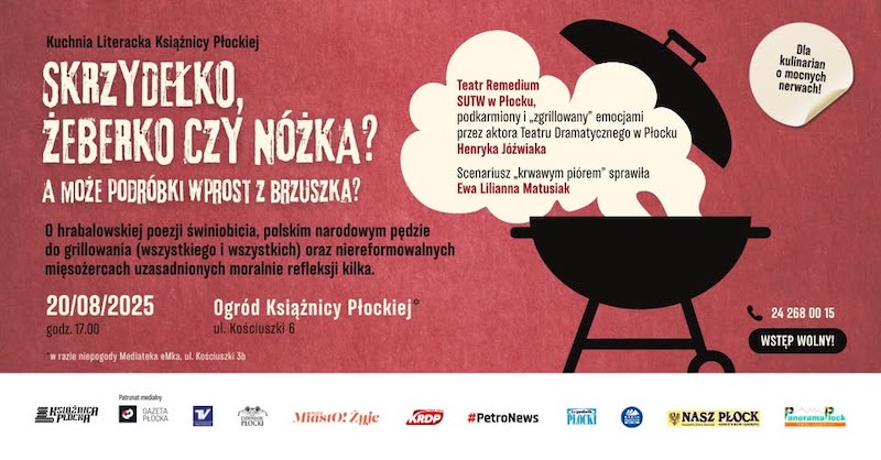 Spotkanie odbędzie się w ogrodzie Książnicy Płockiej przy ul. Kościuszki 6, a w przypadku niepogody przeniesione zostanie do Mediateki eMka przy ul. Kościuszki 3b. Organizatorzy zapewniają, że będzie to wieczór pełen intensywnych smaków – zarówno tych kulinarnych, jak i literacko-teatralnych.