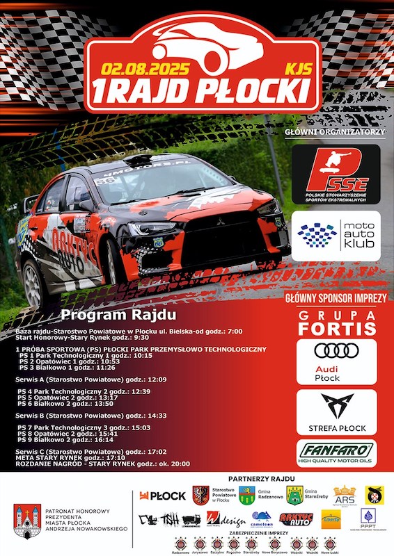 Jak zapowiadają organizatorzy, Płock po raz pierwszy stanie się areną Konkursowej Jazdy Samochodowej – imprezy, która łączy rajdowe emocje z miejskim klimatem. W programie widowiskowe przejazdy, odcinki specjalne pełne emocji, bezpieczne strefy kibica, strefa expo i motoryzacyjne atrakcje.
