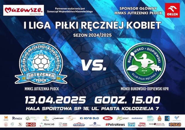 Mecz MMKS Jutrzenka Płock vs. MONDI Bukowsko-Dopiewski KPR odbędzie się 13 kwietnia o godz. 15:00 w Hali Sportowej SP 16.