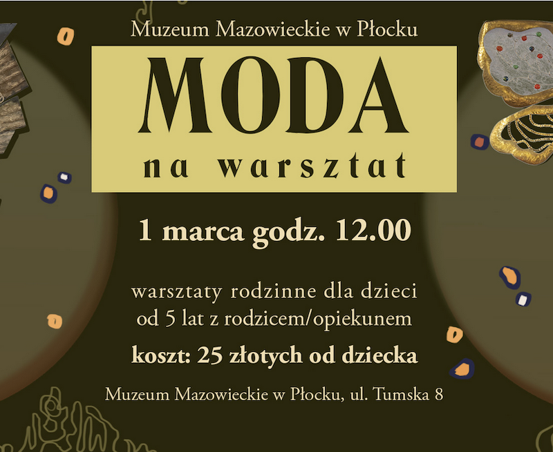 Podczas zajęć uczestnicy zwiedzą muzealną ekspozycję secesyjną – Sklepik modniarski oraz nową wystawę czasową „Barbara Munzer. Teatr postaci-Akt II”. Zwiedzaniu towarzyszyć będzie rozmowa o strojach dawnych i dzisiejszych, różnorodnych modowych inspiracjach, biżuterii powstałej z recyklingowych materiałów oraz drugim życiu odzieży. W części warsztatowej wykonamy prace w technice kolażu inspirowane muzealnymi wystawami oraz modą. Wykorzystamy do tego kolorową prasę, bibułę, papier kolorowy, farby, złote i srebrne folie.