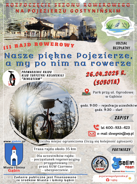 Do 16 kwietnia trwają zapisy na rajd rowerowy po Pojezierzu Gostynińskim. To doskonała okazja, aby aktywnie spędzić czas, poznać piękno lokalnych krajobrazów i wspólnie promować turystykę rowerową.