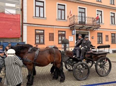 oraz mieszkańców. Później uczestnicy wydarzenia przeszli na Stary Rynek, gdzie jak co roku zaserwowano rosół z gęsiny i wyjątkowo w tym roku pojawiła się bryczka.