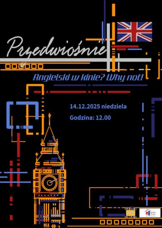 Kolejną propozycją są bezpłatne zajęcia „Angielski w Kinie”, organizowane we współpracy z British House Płock. To radosne warsztaty językowe przeznaczone dla dzieci od 2. do 7. roku życia. Zajęcia rozpoczną się o godzinie 12:00 i będą oparte na nauce poprzez zabawę w filmowej scenerii.