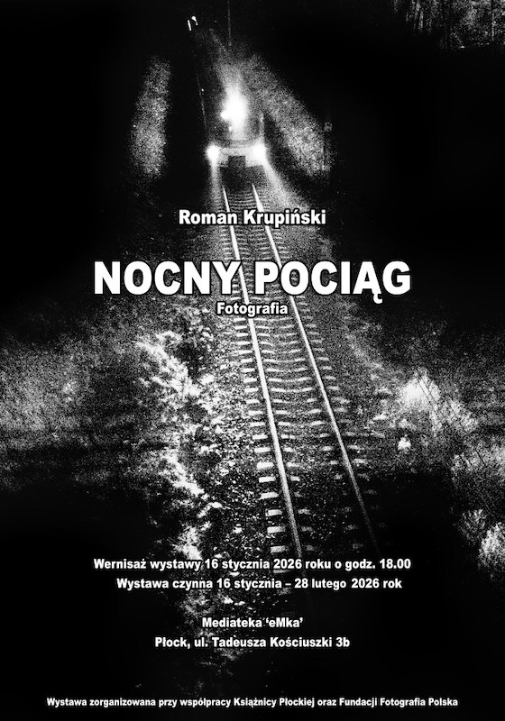 W piątek, 16 stycznia, o godzinie 18:00 w Mediatece eMka w Płocku odbędzie się wernisaż wystawy fotograficznej Romana Krupińskiego pod tytułem „Nocny Pociąg”.