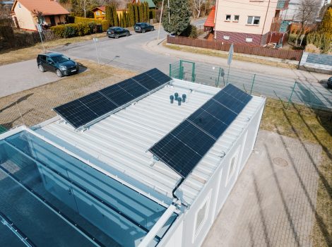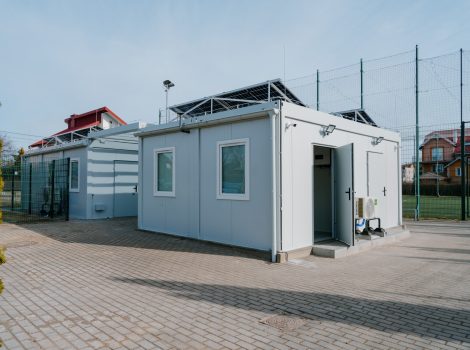 Jesienią ubiegłego roku rozpoczęto modernizację obiektu przy ul. Zamenhofa. Zakres prac obejmował zarówno zaplecze techniczne, jak i nawierzchnie boisk. Najpierw rozebrano stare budynki zaplecza sanitarno-socjalnego. W ich miejscu powstały nowe, wykonane w technologii kontenerowej, wyposażone w niezbędne instalacje oraz rozwiązania zapewniające bezpieczne i komfortowe użytkowanie. Na dachu budynku zamontowano również panele fotowoltaiczne o mocy 4,8 kWp, które będą zasilać kompleks w ekologiczną energię.
