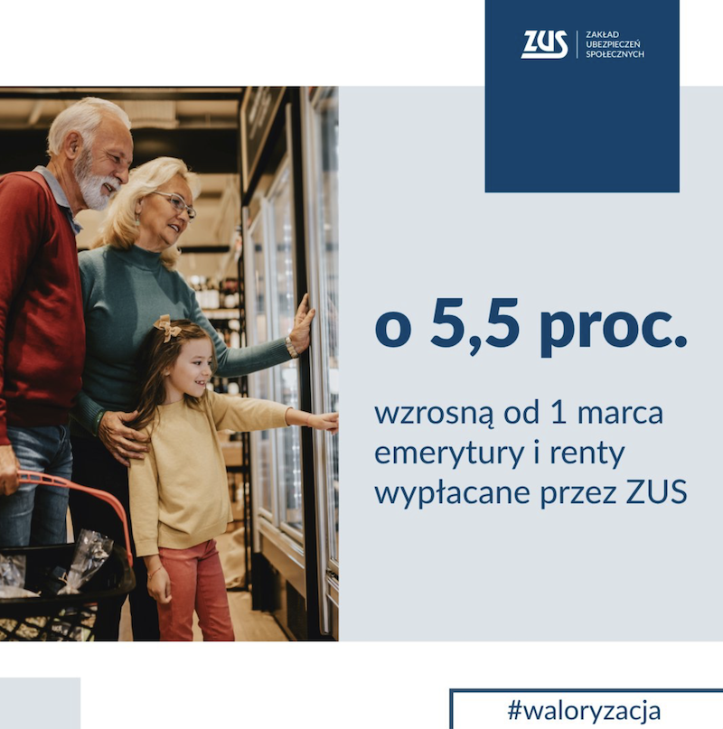 Świadczenia emerytalno-rentowe wypłacane przez ZUS są co roku waloryzowane. Polega to na pomnożeniu kwoty świadczenia w wysokości przysługującej na koniec lutego danego roku przez wskaźnik waloryzacji. Wysokość wskaźnika waloryzacji uzależniona jest od średniorocznej inflacji dla gospodarstw emerytów i rencistów za poprzedni rok i powiększony o co najmniej 20 proc. realnego wzrostu przeciętnego wynagrodzenia. W tym roku emerytury i renty zostaną podniesione procentowo, a ostateczna wysokość wskaźnika – 105,5 procent – została opublikowana 14 lutego w Monitorze Polskim komunikatem Ministra Rodziny, Pracy i Polityki Społecznej.
