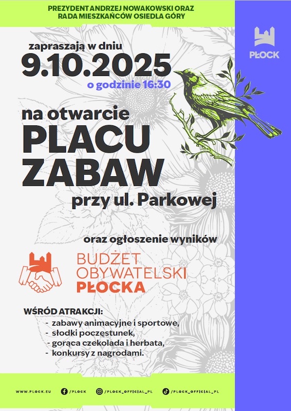 Podczas uroczystości zostaną również ogłoszone zwycięskie projekty BOP, na które od 15 do 28 września każdy płocczanin, niezależne od wieku, mógł oddać swój głos. W tym roku było 21 pozycji, z czego 14 ogólnomiejskich i 7 osiedlowych.