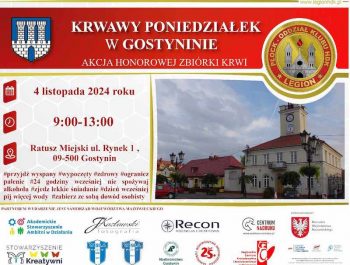 Rozpoczęła się akcja honorowej zbiórki krwi w Gostyninie, potrwa do godz. 13:00. Przed nami kolejne dwie w Sierpcu! Przychodząc do punktu krwiodawstwa, pomagasz w wyzdrowieniu lub bezpośrednio ratujesz życie drugiego człowieka. Honorowe krwiodawstwo...