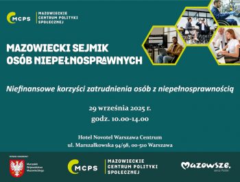 Mazowieckie Centrum Polityki Społecznej zaprasza do udziału w kolejnej edycji Mazowieckiego Sejmiku Osób Niepełnosprawnych, który odbędzie się 29 września br. w Hotelu Novotel Warszawa Centrum. Tegoroczna edycja konferencji poświęcona będzie...