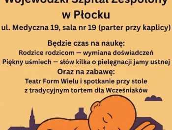 W poniedziałek, 17 listopada, w Wojewódzkim Szpitalu Zespolonym w Płocku odbędzie się Dzień Wcześniaka. Placówka zaprasza do sali konferencyjnej 17 listopada w godz. 12:00-15:00. „Będzie czas na naukę, czyli wzajemną wymianę doświadczeń...