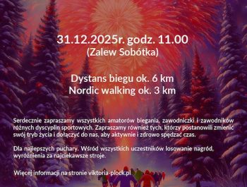 Miłośnicy aktywnego stylu życia już po raz piętnasty spotkają się w Płocku na sportowym zakończeniu roku. W środę, 31 grudnia, o godzinie 11:00 nad Zalewem Sobótka odbędzie się XV Płocki Bieg Sylwestrowy, na który zapraszają organizatorzy...