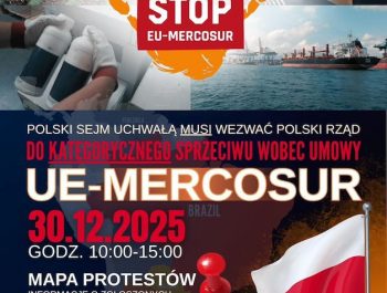Rolnicy zapowiadają nową ogólnopolską akcję protestacyjną. W całym kraju mają pojawić się ciągniki ustawione przy drogach oraz wiaduktach, jako wyraz sprzeciwu wobec planów podpisania umowy handlowej UE–Mercosur. Decyzja o podjęciu strajku...
