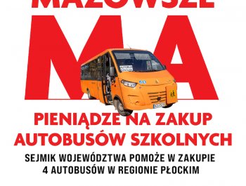 Sejmik województwa mazowieckiego dofinansuje zakup 35 autobusów. Na realizację programu „Autobusy dla mazowieckich szkół” samorząd przeznaczy blisko 14,4 mln zł. W regionie płockim dofinansowanie otrzymają 4 gminy. To już trzecia edycja...