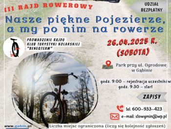 Stowarzyszenie Gmin Turystycznych Pojezierza Gostynińskiego przyjmuje zapisy na rajd rowerowy, który odbędzie się 26 kwietnia 2025 roku. Do 16 kwietnia trwają zapisy na rajd rowerowy po Pojezierzu Gostynińskim. To doskonała okazja, aby aktywnie...