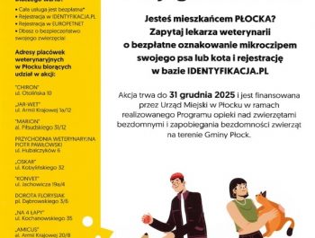 Urząd Miasta Płocka zachęca do skorzystania z darmowej usługi czipowania swoich pupili. Samorząd realizuje i finansuje „Program opieki nad zwierzętami bezdomnymi oraz zapobiegania bezdomności zwierząt Gminy – Miasto Płock”. Tak jak w ubiegłych...