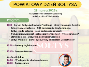Starosta Płocki Sylwester Ziemkiewicz oraz Przewodniczący Rady Powiatu w Płocku Lech Dąbrowski zapraszają sołtysów z powiatu płockiego na Powiatowy Dzień Sołtysa. Wszystkich chętnych sołtysów, którzy chcą dowiedzieć się więcej o roli...