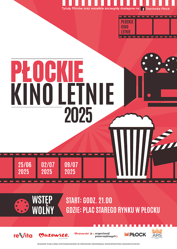 Projekt „Płockie Kino Letnie 2025” jest dofinansowany ze środków Samorządu Województwa Mazowieckiego. Wsparcia w realizacji projektu udzieliła Gmina Miasto Płock oraz ARS Sp. z o.o.