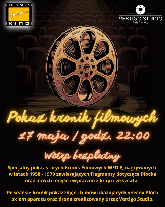 Po seansie odbędzie się pokaz zdjęć i filmów ukazujących obecny Płock okiem aparatu i drona zrealizowany przez Vertigo Studio.
