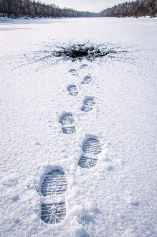 Choć tafla lodu może wyglądać na grubą i bezpieczną, jej wygląd bywa bardzo mylący. Nigdy nie mamy pewności, co dzieje się pod powierzchnią. Wystarczy jeden krok w słabszym miejscu, by lód pękł, a człowiek wpadł do lodowatej wody. W takich warunkach zagrożenie życia pojawia się w ciągu kilku chwil.