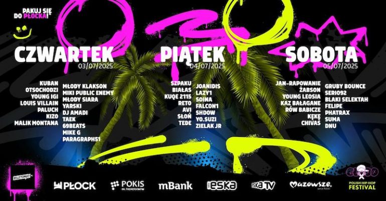 Już 3 lipca do Płocka zawita hip-hopowa energia. Najwięksi artyści polskiej sceny, mocny lineup i niezastąpiony klimat nad Wisłą — tak zapowiada się Polish Hip-Hop Festival.