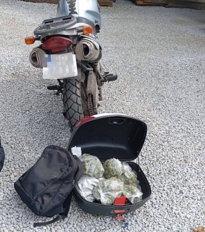 Zatrzymanym motocyklistą okazał się 34-latek. W wyniku sprawdzenia kufrów policjanci odnaleźli 7 toreb foliowych, w których było ponad 700 gr marihuany oraz 1 torbę foliową, w której było prawie 90 gr mefedronu.