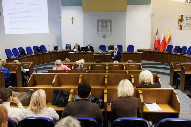 Statystyki pokazujące trudną sytuację demograficzną zaprezentowała Agnieszka Harabasz. Bardzo niepokojący jest spadek liczby urodzin płocczan. W 2020 roku było to 840 osób, a w 2025 tylko 567. To z kolei przekłada się na coraz mniejszą liczbę oddziałów uruchamianych w miejskich przedszkolach.