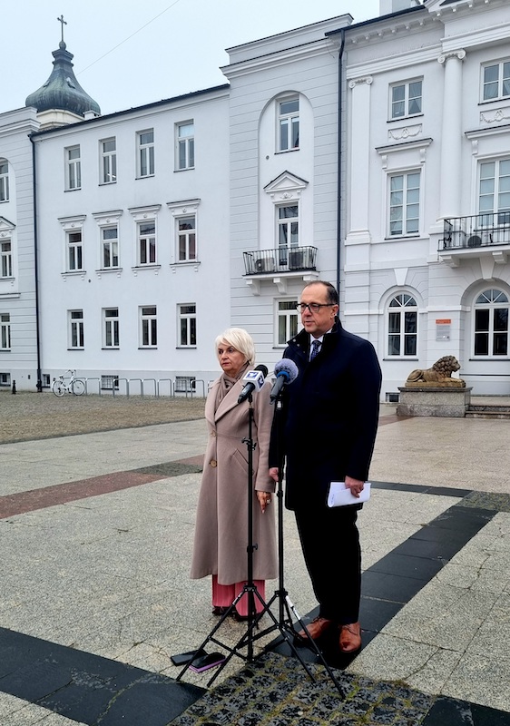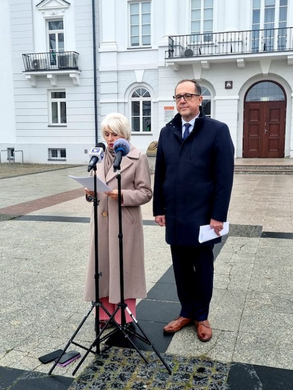 Dziś, 1 grudnia, przed płockim ratuszem odbyła się konferencja prasowa posłów Koalicji Obywatelskiej poświęcona Programowi Ochrony Ludności i Obrony Cywilnej. Spotkanie z mediami zorganizowali posłowie Elżbieta Gapińska i Adam Krzemiński, którzy podkreślali potrzebę wzmocnienia systemów reagowania kryzysowego oraz lepszego przygotowania samorządów na sytuacje zagrożenia.