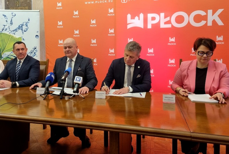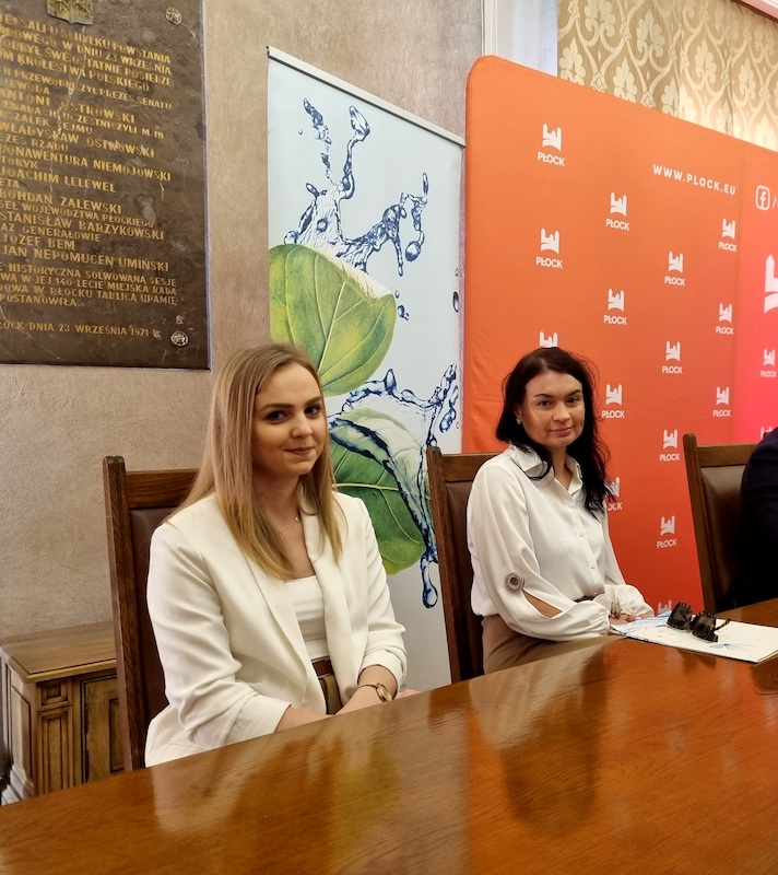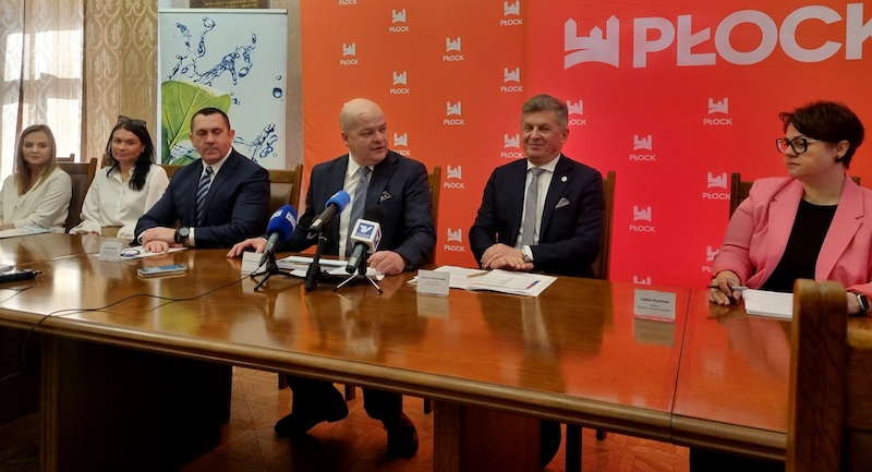 W piątek, 4 kwietnia, o godz. 09:00 w sali sejmowej ratusza odbyła się konferencja z udziałem Prezydenta Miasta Płocka Andrzeja Nowakowskiego, Wiceprezydenta Artura Zielińskiego, Prezesa Zarządu Wodociągi Płockie Andrzeja Wiśniewskiego, Dyrektor Wydziału Funduszy Europejskich Izabeli Kamińskiej oraz Agaty Buczek i Dominiki Jankowskiej. Podczas spotkania szczegółowo omówiony został projekt „Zielono–niebieski Płock. Adaptacja do zmian klimatu”.