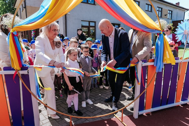 Natomiast w sąsiadującym ze szkołą Miejskim Przedszkolu nr 13 oprócz ułożenia bezpiecznej amortyzującej upadki nawierzchni ustawiono także nowe urządzenia do zabawy – huśtawki, domki, bujaki, karuzele – oraz edukacyjne – kółko i krzyżyk, piaskownicę czy domek laboratorium. Całość dopełnia ścieżka sensoryczna.