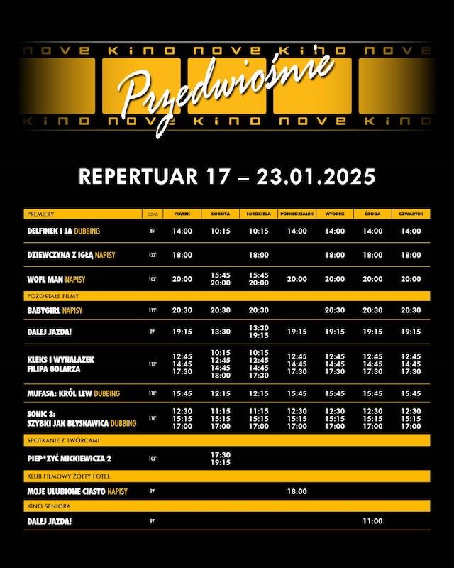 Repertuar w NoveKino Przedwiośnie na najbliższe dni