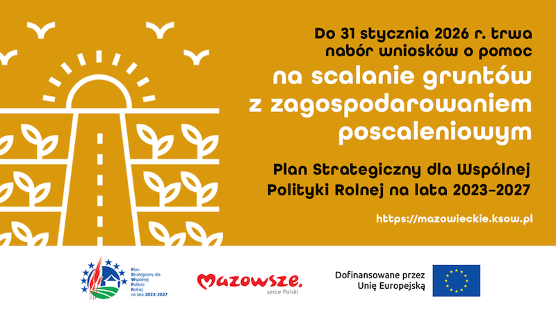 Powiaty z Mazowsza mogą ubiegać się o nawet 100-procentową refundację kosztów związanych ze scalaniem gruntów oraz zagospodarowaniem terenów po scaleniu. Nabór prowadzony jest w ramach Planu Strategicznego dla Wspólnej Polityki Rolnej na lata 2023–2027, a wnioski można składać do 31 stycznia 2026 roku.