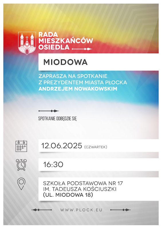 Już w najbliższy czwartek spotkanie mieszkańców osiedla Miodowa z Prezydentem Płocka Andrzejem Nowakowskim. Spotkanie odbędzie się o godzinie 16:30 w sali gimnastycznej Szkoły Podstawowej nr 17 im. Tadeusza Kościuszki przy ul. Miodowej 18.