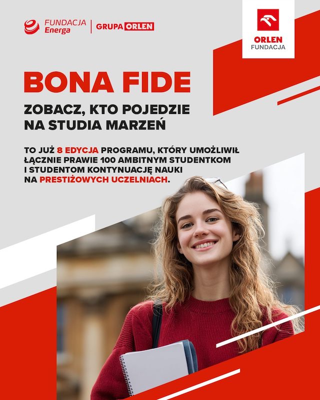 „Każda edycja programu Bona Fide to konkretne historie ambitnych młodych ludzi, którzy chcą zdobywać wiedzę na najwyższym poziomie i wracać do Polski, by realnie wpływać na jej rozwój. Byliśmy pod ogromnym wrażeniem motywacji, dojrzałości i świadomości kandydatów w tegorocznym naborze. To pokazuje, że program trafia do osób, które łączą edukacyjną odwagę z odpowiedzialnością za kraj” – podkreśla Iwona Ryniewicz, Prezeska Fundacji ORLEN.