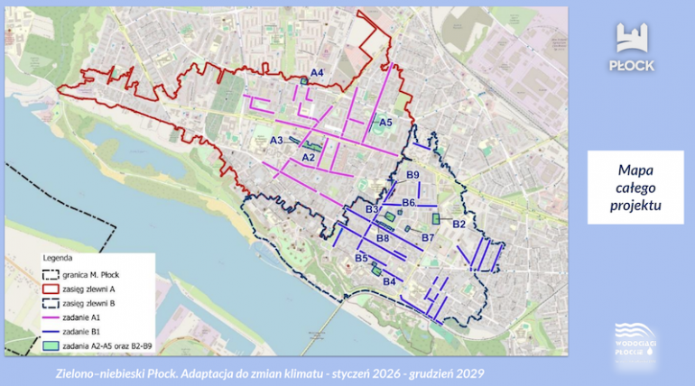 Prezydent Płocka rozpoczął spotkanie od przedstawienia projektu “Zielono-niebieski Płock. Adaptacja do zmian klimatu”. To połączenie współpracy między Wydziałem Inwestycji i Remontów Urzędu Miasta Płocka, Miejskim Zarządem Dróg i Wodociągów Płockich.