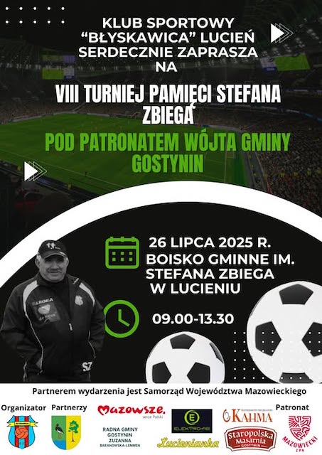 Turniej Pamięci Stefana Zbiega rozpocznie się o godzinie 09:00 i potrwa do 13:30. Na murawie w Lucieniu zmierzy się sześć drużyn: Błyskawica Lucień, Szopen I Sanniki, Szopen II Sanniki, GKS Baruchowo, Wisła Nowy Duninów oraz Unia Czermno. Rywalizacja będzie rozgrywana w duchu fair play – jak co roku, podczas wydarzenia nie chodzi tylko o wynik, lecz także o pielęgnowanie pamięci o Stefanie Zbiegu, który był założycielem i wieloletnim działaczem klubu Błyskawica Lucień.