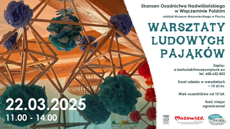 Zbliżają się naprawdę oryginalne warsztaty – wykonywania pająków ludowych. Jak podkreślają organizatorzy wydarzenia, dawniej wierzono, że ich wielobarwność oraz wieczny ruch przynoszą domowi szczęście i dobrobyt.