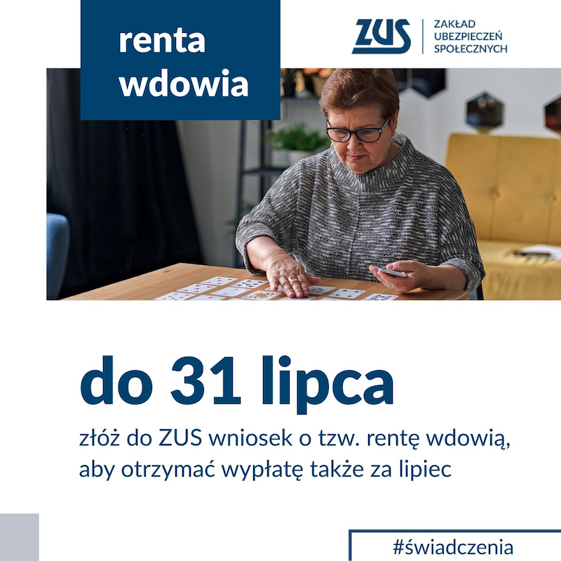 Do ZUS-u napływają wnioski o rentę wdowią. Placówka podkreśla, że warto zrobić to jeszcze w lipcu, wtedy świadczenie zostanie wypłacano także za lipiec. W przypadku wniosków złożonych w następnych miesiącach i rozpatrzonych pozytywnie, wypłata będzie uruchomiona od miesiąca, w którym wniosek trafi do ZUS.