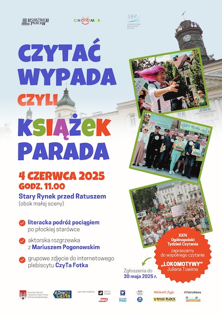 Już jutro, 4 czerwca, na płockiej starówce odbędzie się czytanie „Lokomotywy” Juliana Tuwima. Udział weźmie Prezydenta Miasta Płocka Andrzej Nowakowski oraz zaproszeni goście w ramach XXIV Ogólnopolskiego Tygodnia Czytania Dzieciom, który w tym roku przebiega pod hasłem „Czytanie zbliża”.