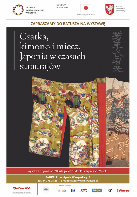 Japonia – kraj kontrastów, w którym nowoczesność splata się z głęboką zakorzenioną tradycją. Zaawansowane technologie, zachwycające miasta, superszybkie pociągi, a jednocześnie starożytne świątynie, rytuały herbaciane, filozofia zen i samurajski duch honoru, który nadal obecny jest w codziennym życiu. Te wszystkie aspekty spróbuje pokazać Muzeum Wsi Mazowieckiej w Sierpcu poprzez wystawę „Czarka, kimono, miecz. Japonia w czasach samurajów” dostępną w ratuszu od 20 lutego 2025 r.