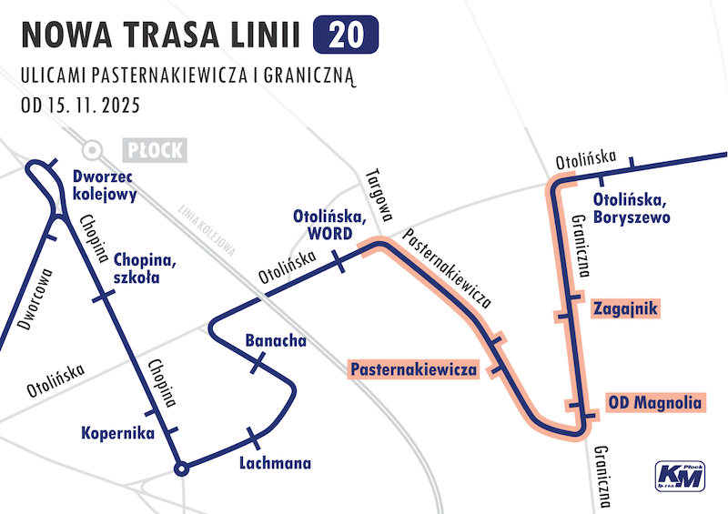 Jak podaje MZK, zmiany wynikają zarówno z wytyczenia nowego odcinka dla linii 20, jak i konieczności dostosowania kursów na wspólnych odcinkach tras, tak aby zapewnić lepszą koordynację.